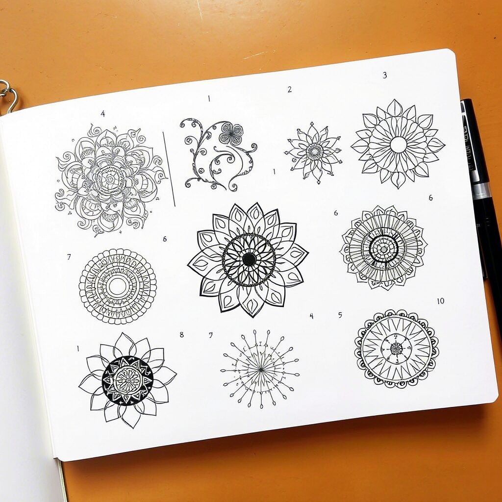 - Mandalas: Start with a center point and work outward in circular, symmetrical patterns.