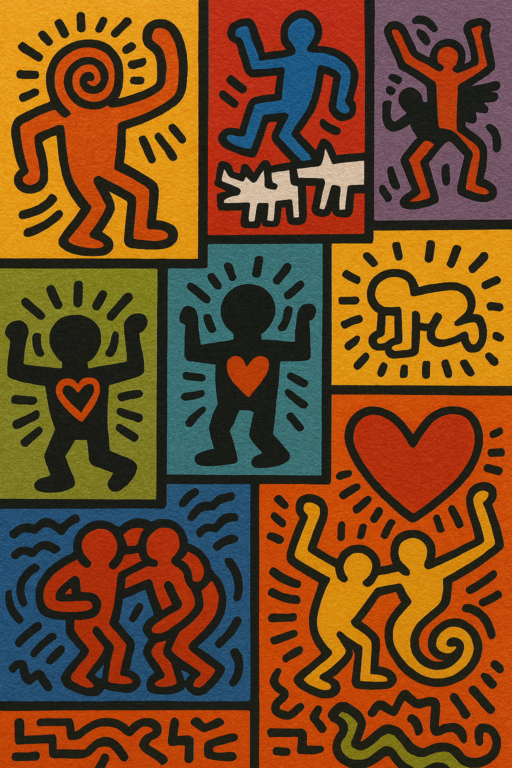 Haring used his drawings to convey diverse messages including love, unity, peace, and equality as core themes; AIDS awareness and safe sex education during the epidemic; anti-apartheid activism and racial justice; nuclear disarmament and peace advocacy; LGBTQ+ rights and visibility; drug abuse prevention (like his famous “Crack is Wack” mural); environmental protection; and children’s rights and education. His art served as a powerful form of activism and social commentary, addressing serious issues through accessible visual language that could reach broad audiences.