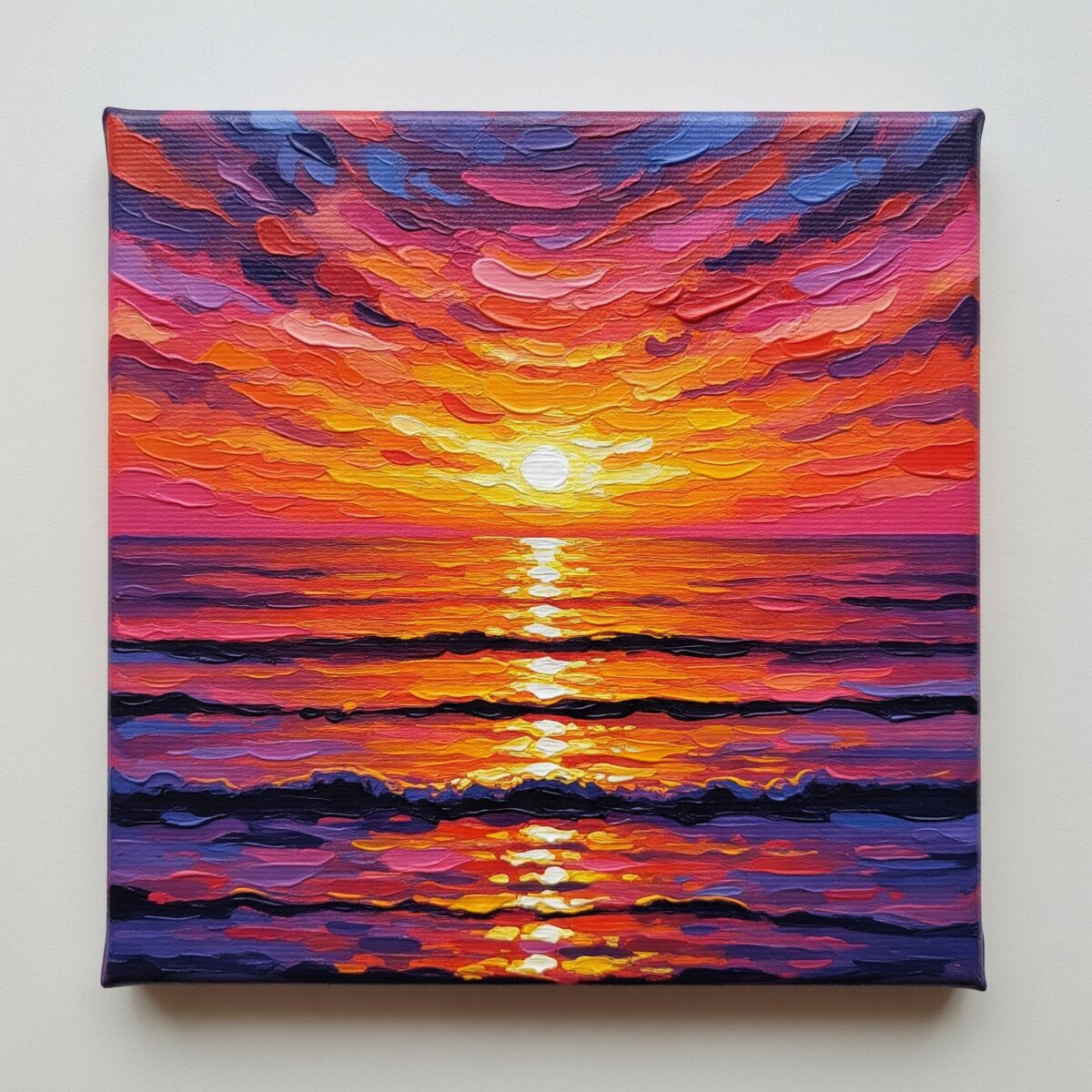 🎥 Watch this tutorial: “Easy 10 Minute Sunset Mini Canvas Painting”