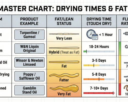| Alkyd Medium | W&N Liquin Original | Hybrid (Treat as Fat) | 18-24 Hours | 8 (High) |