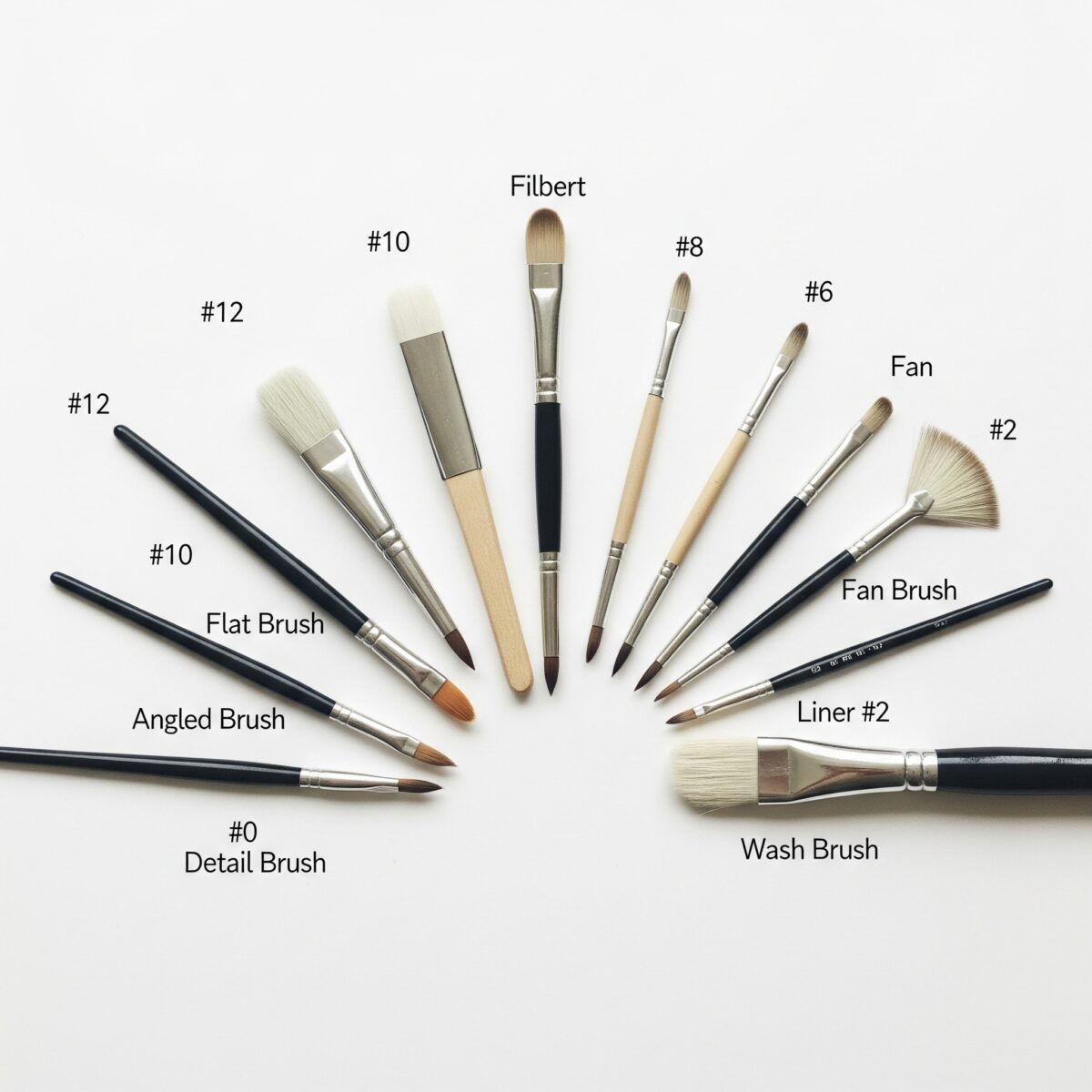Which brushes are best for beginners? Start with synthetic brushes in basic shapes: round brushes (sizes 2, 6, 12), flat brushes (sizes 4, 10), one detail brush (size 0), and a wash brush. This covers most painting needs affordably.